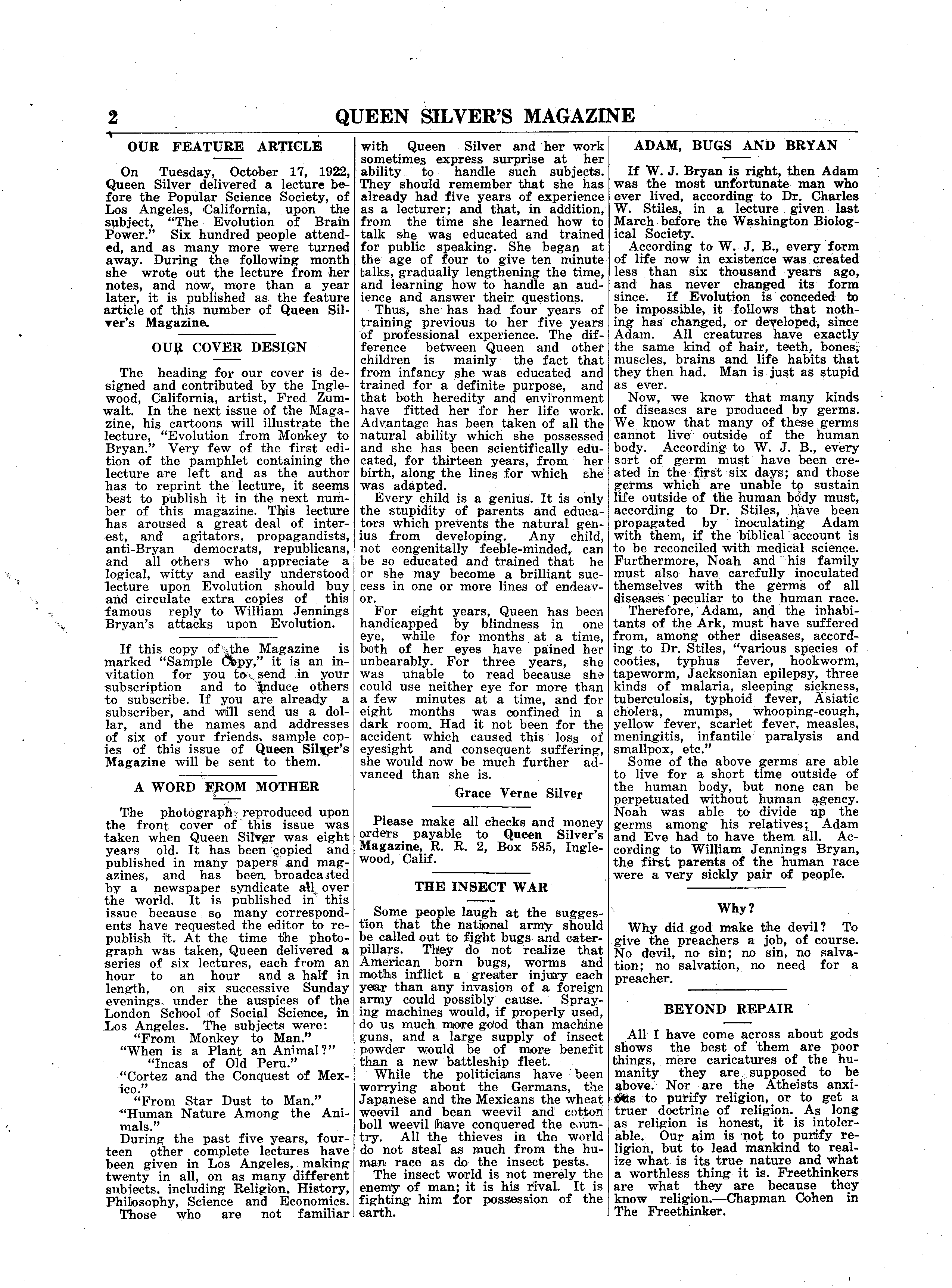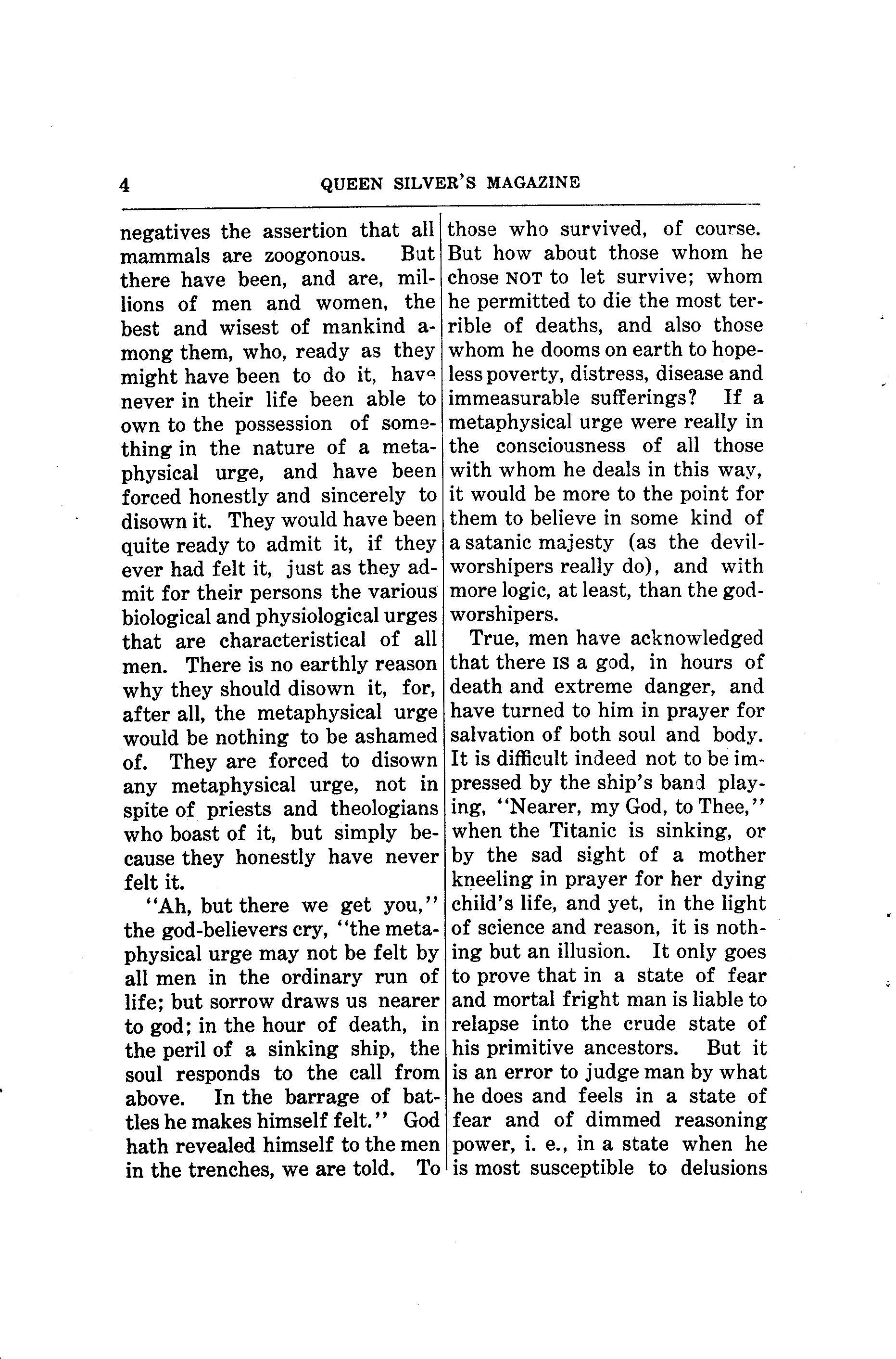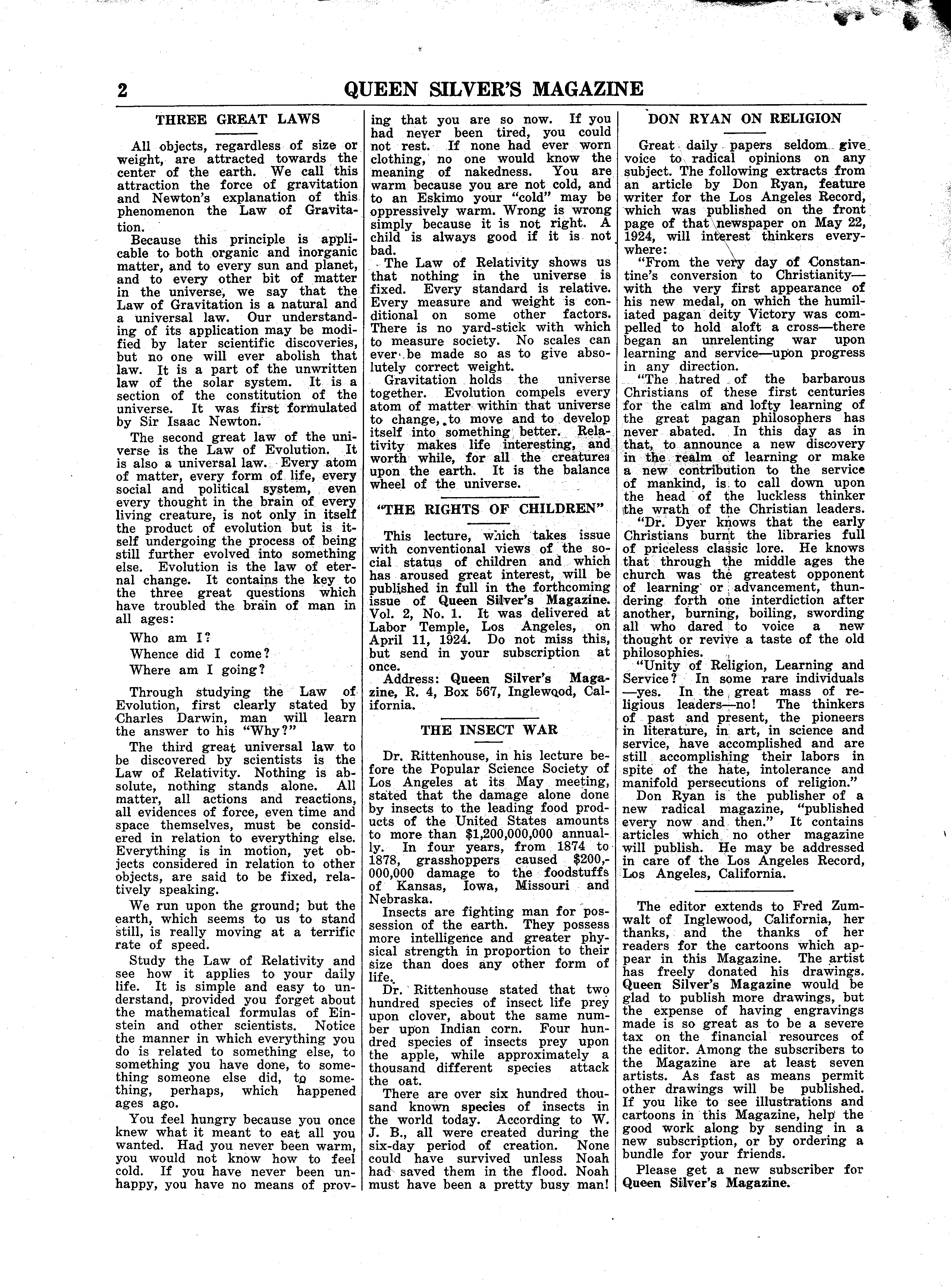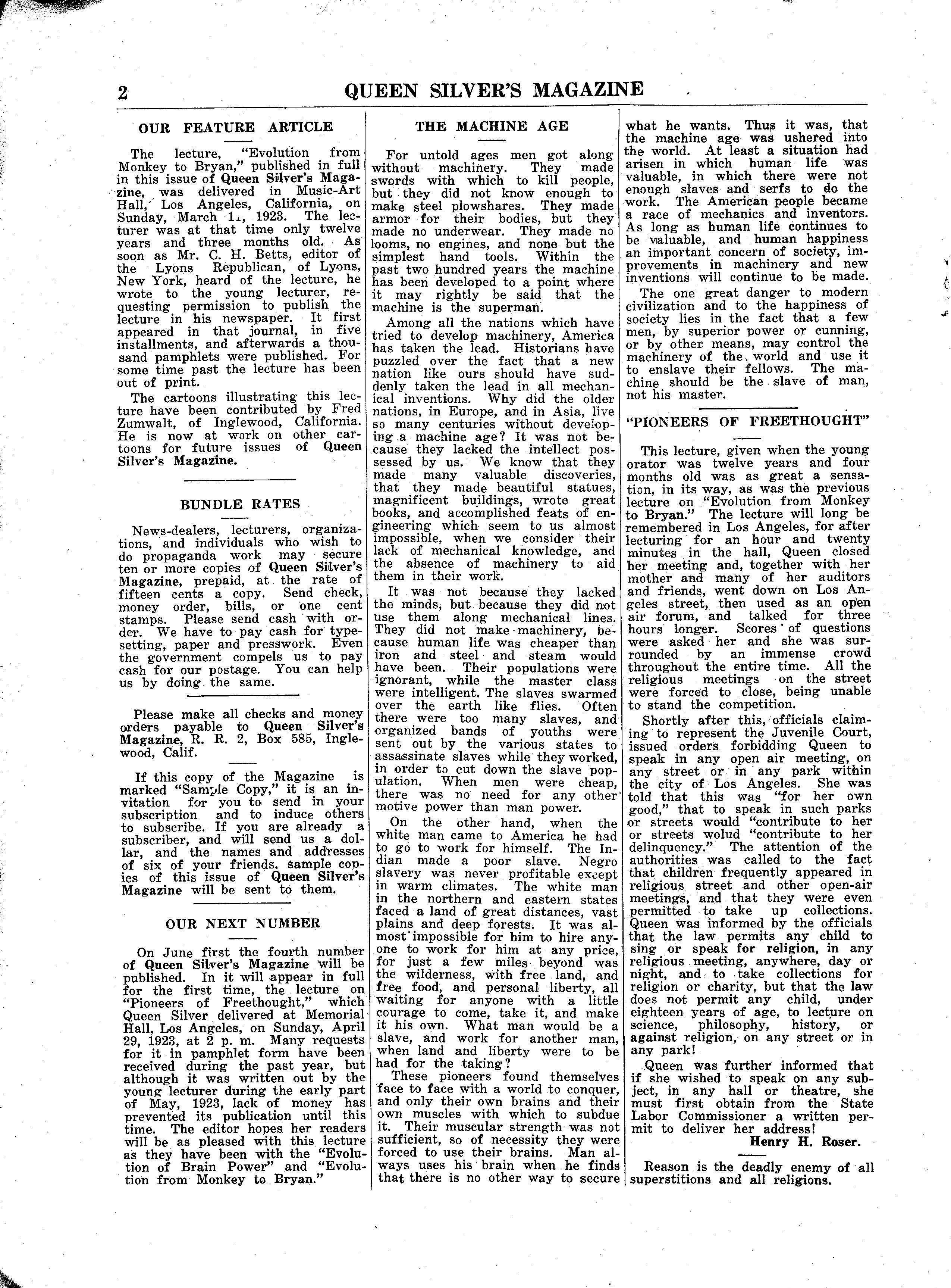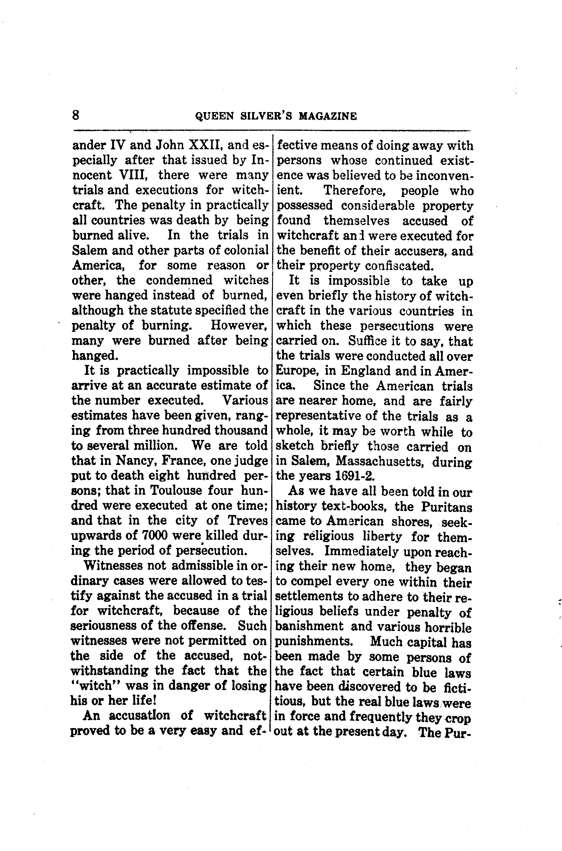 Selected issues of Queen Silver's Magazine have been scanned and converted to Adobe PDF files. Others are available, page by page, as raw scans (PNG images).