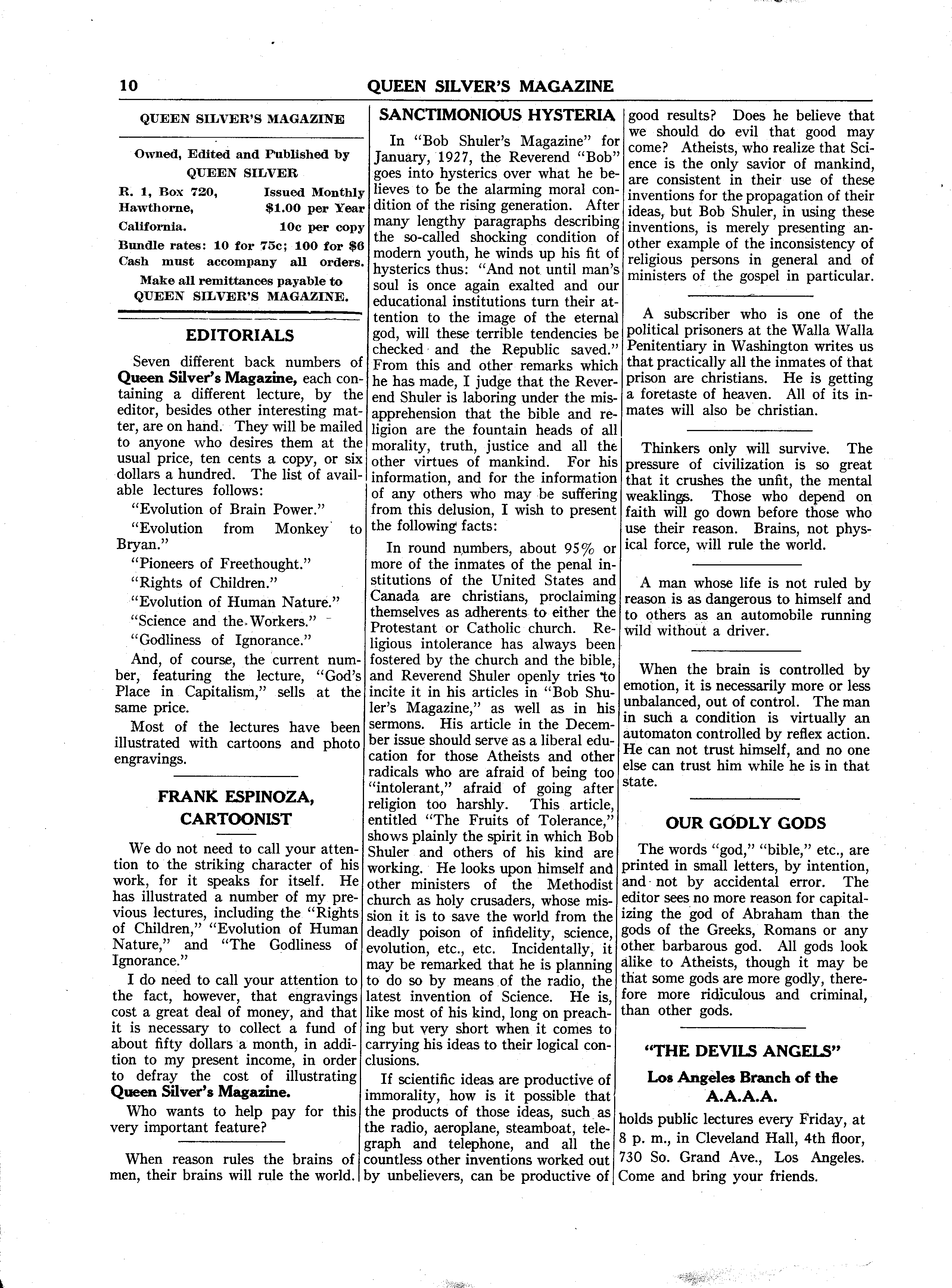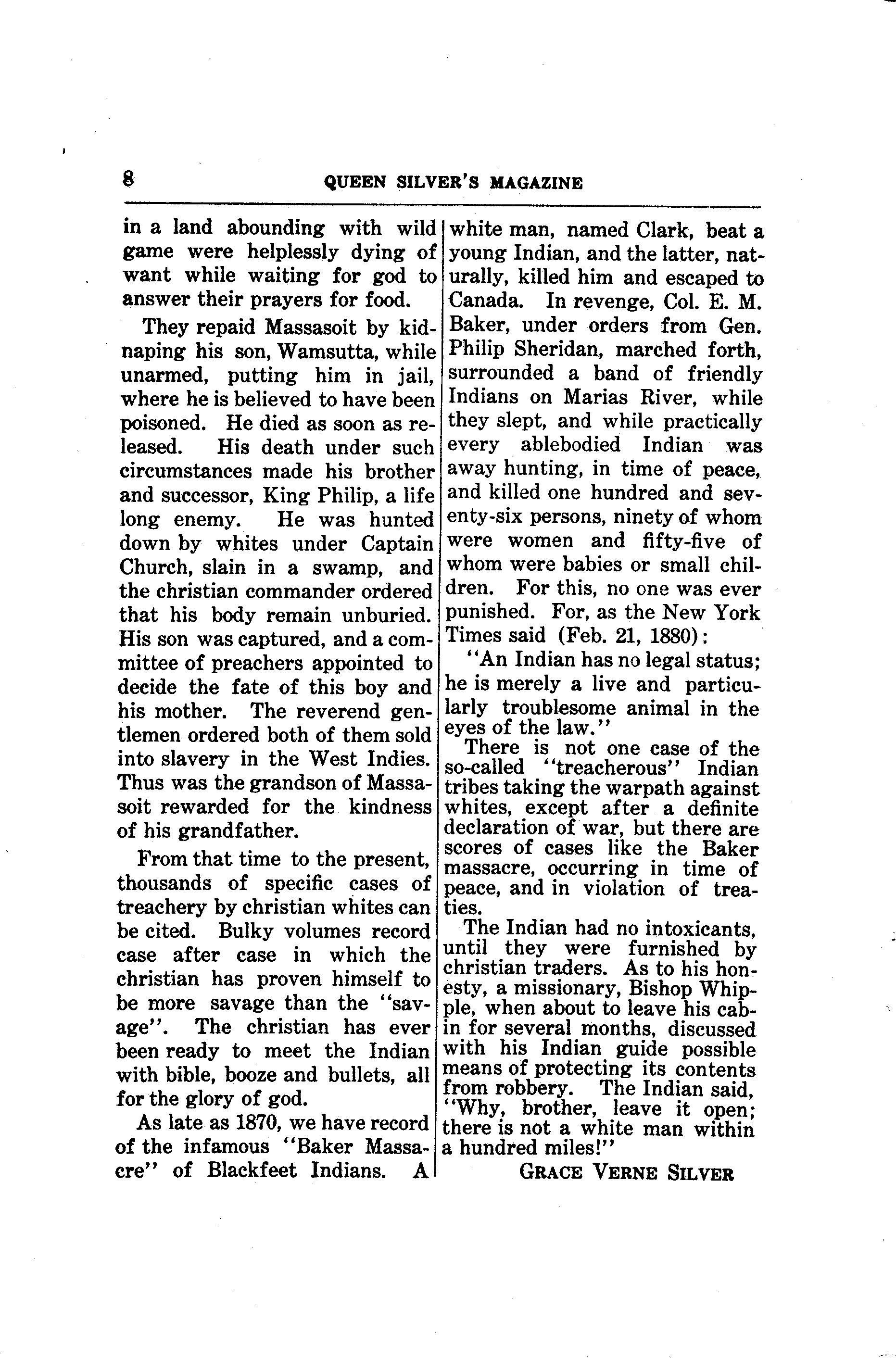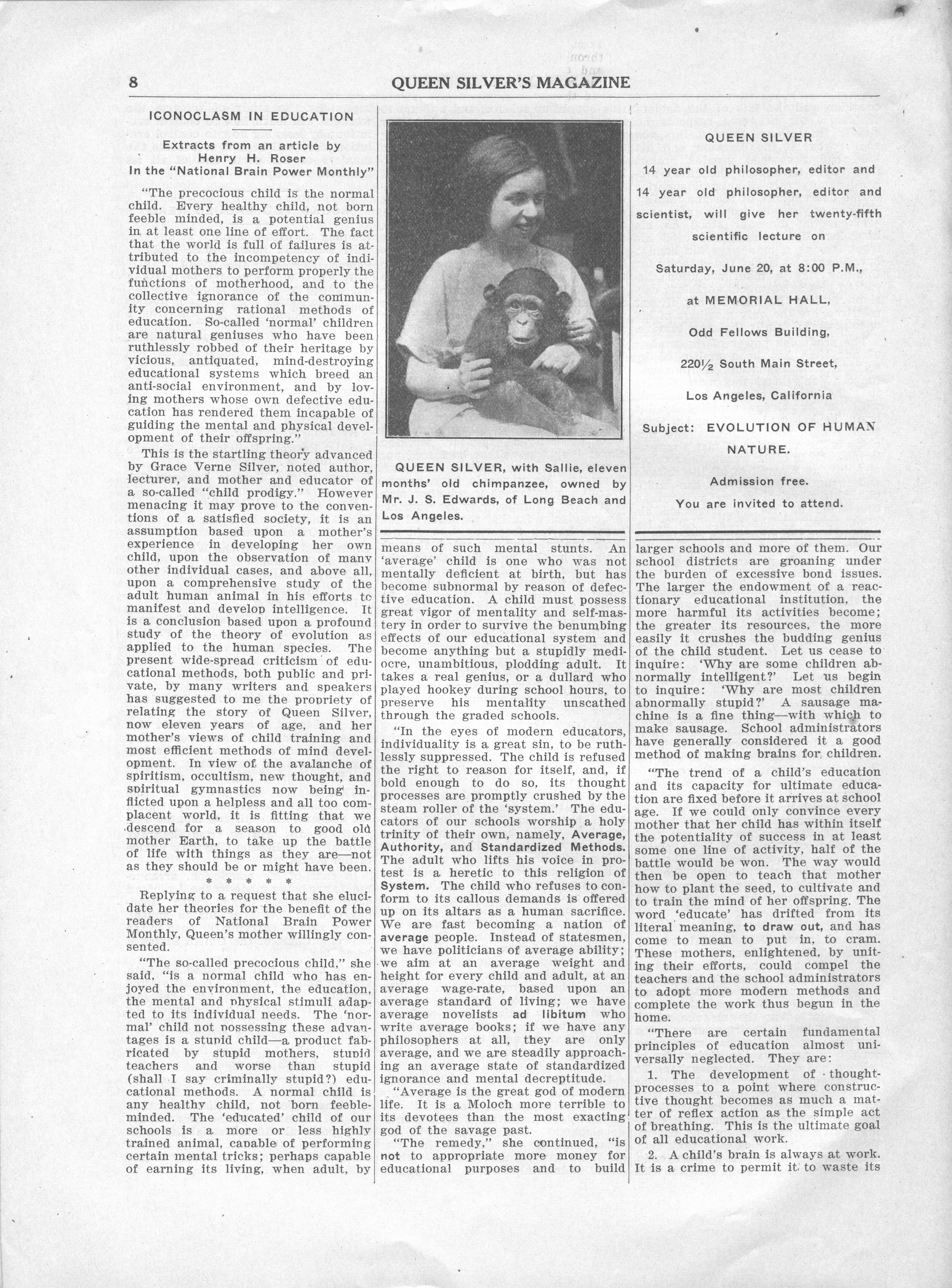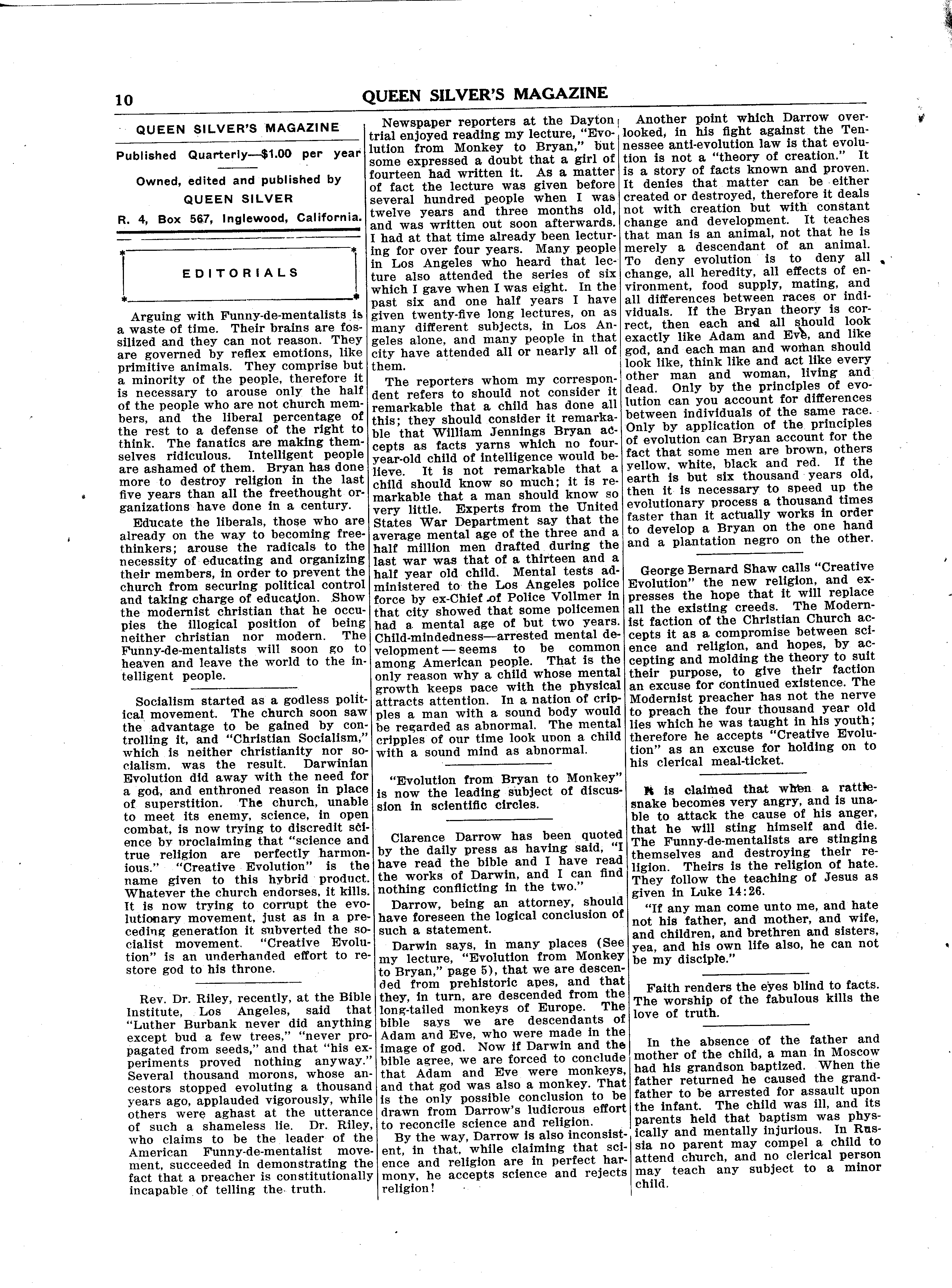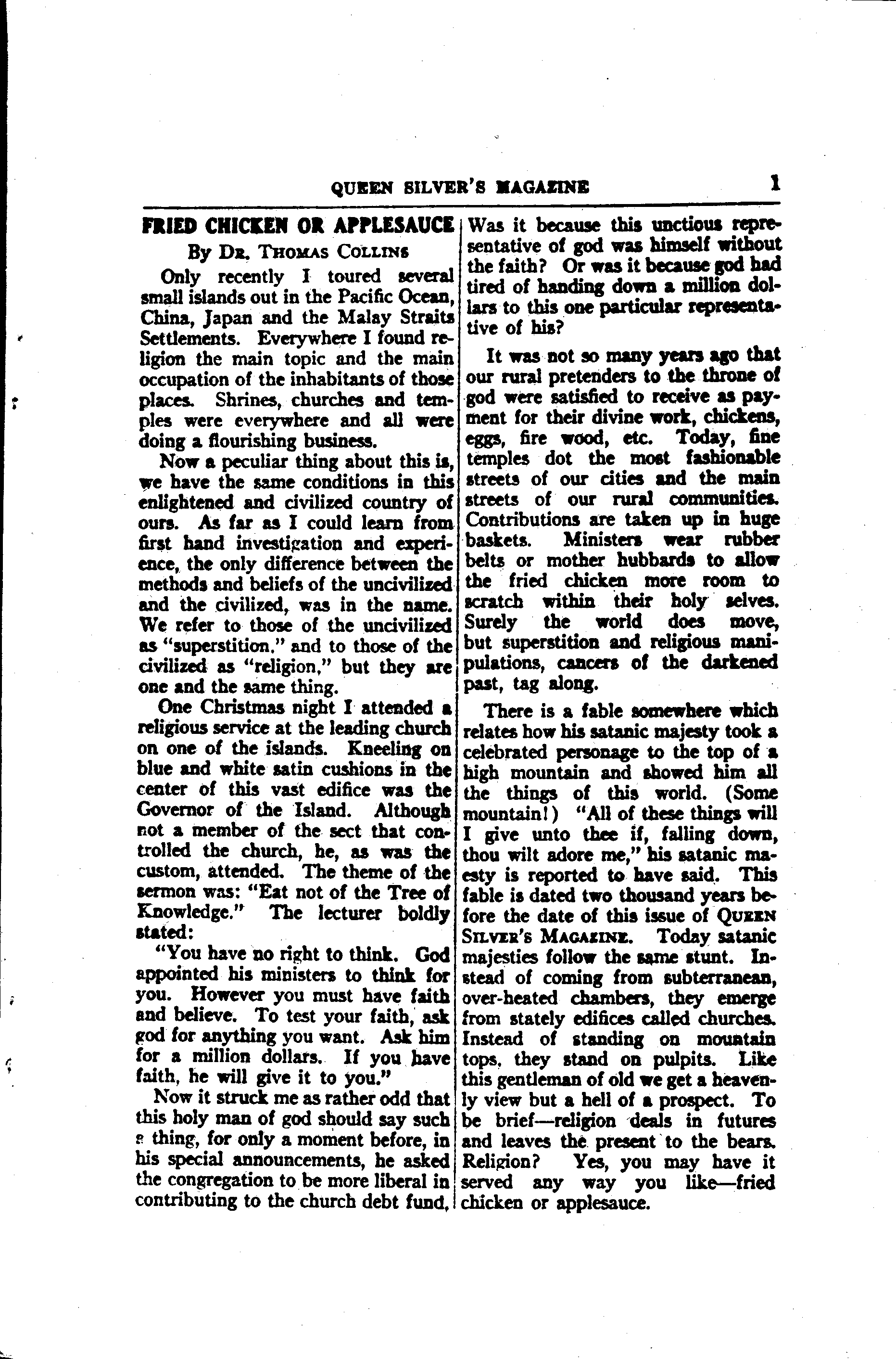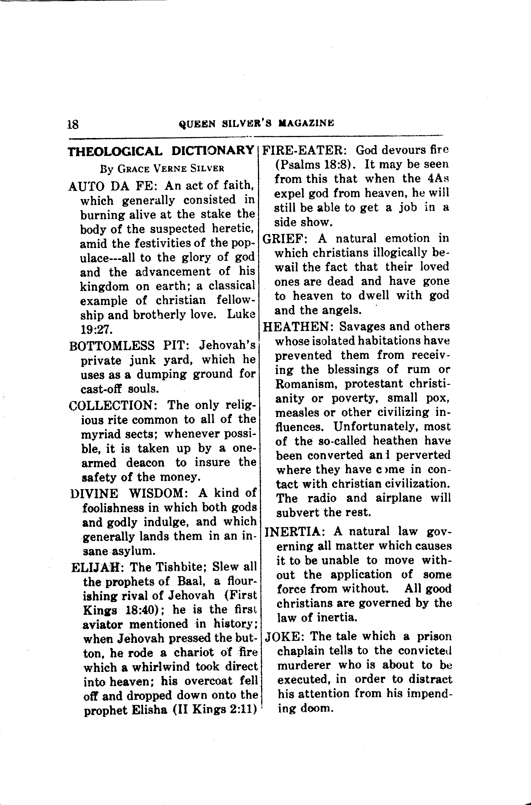 Selected issues of Queen Silver's Magazine have been scanned and converted to Adobe PDF files. Others are available, page by page, as raw scans (PNG images).