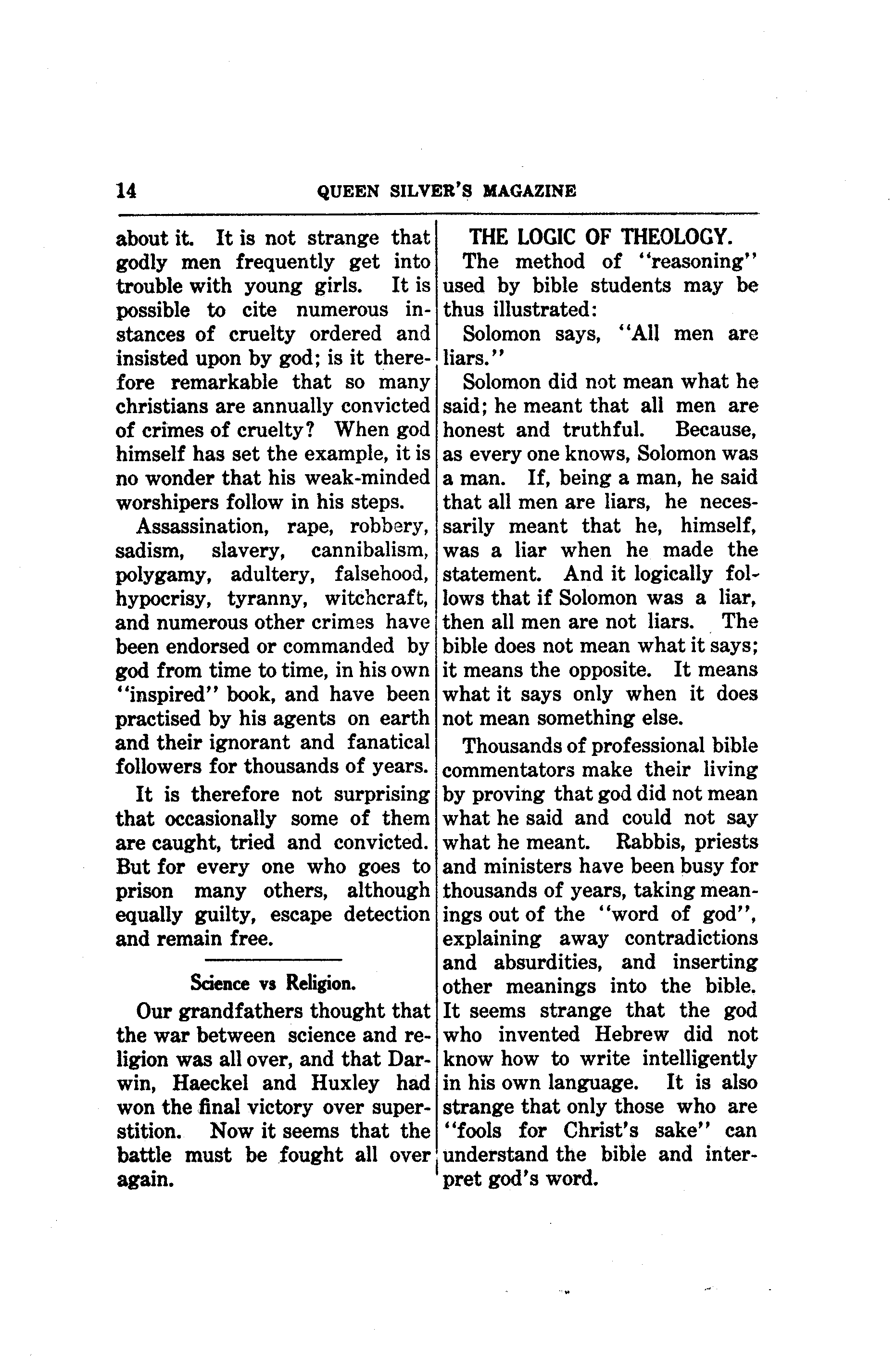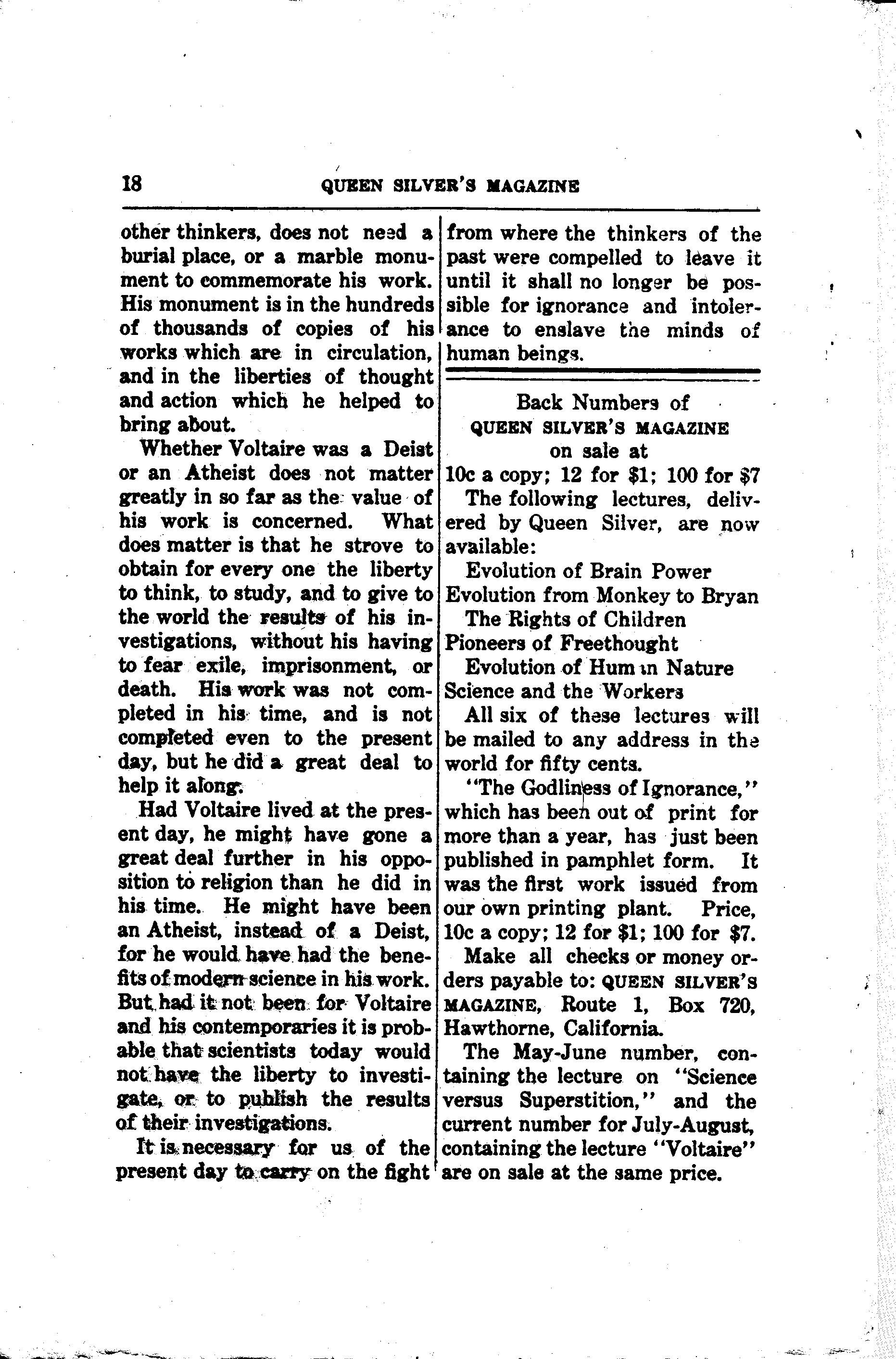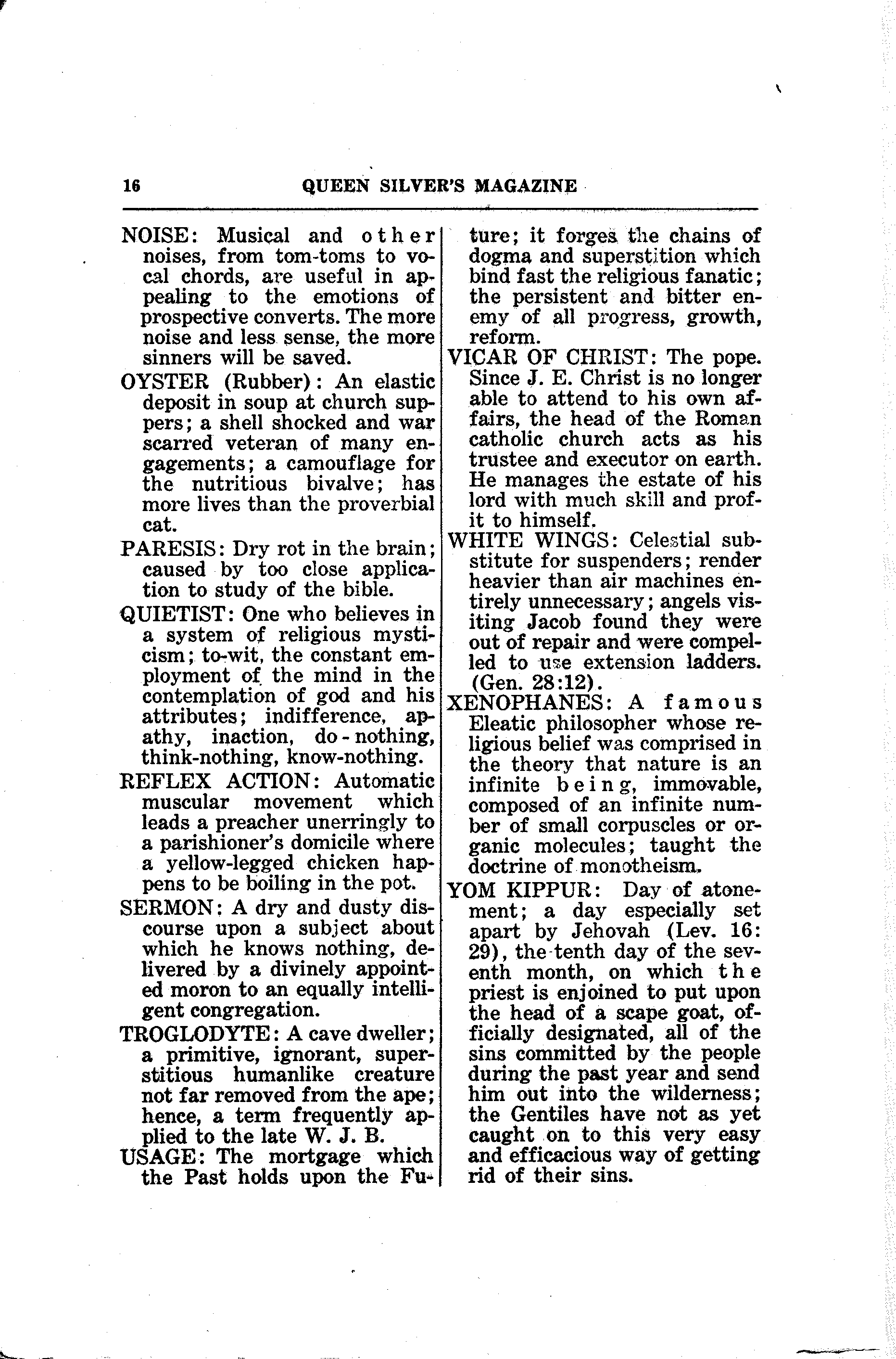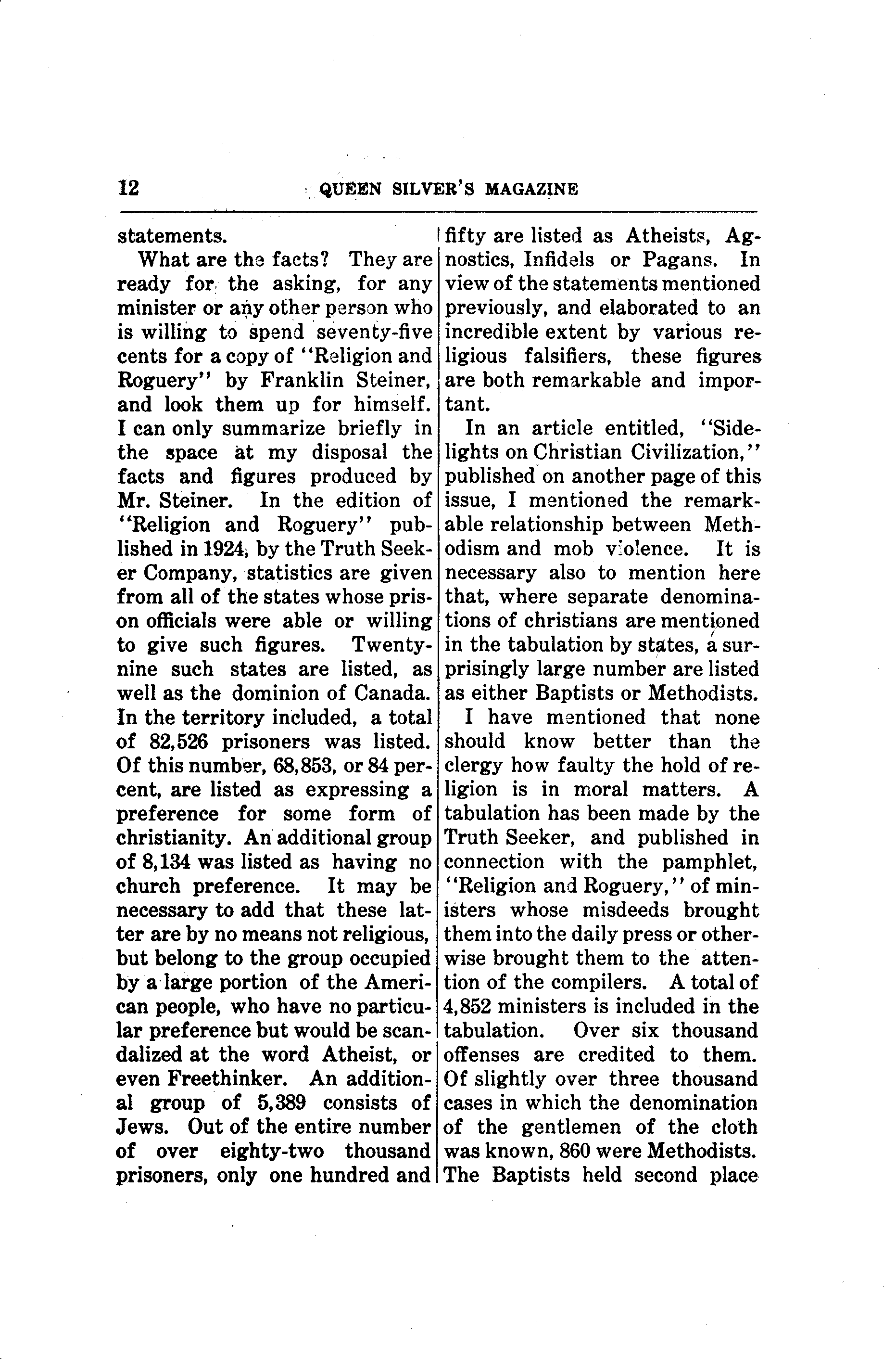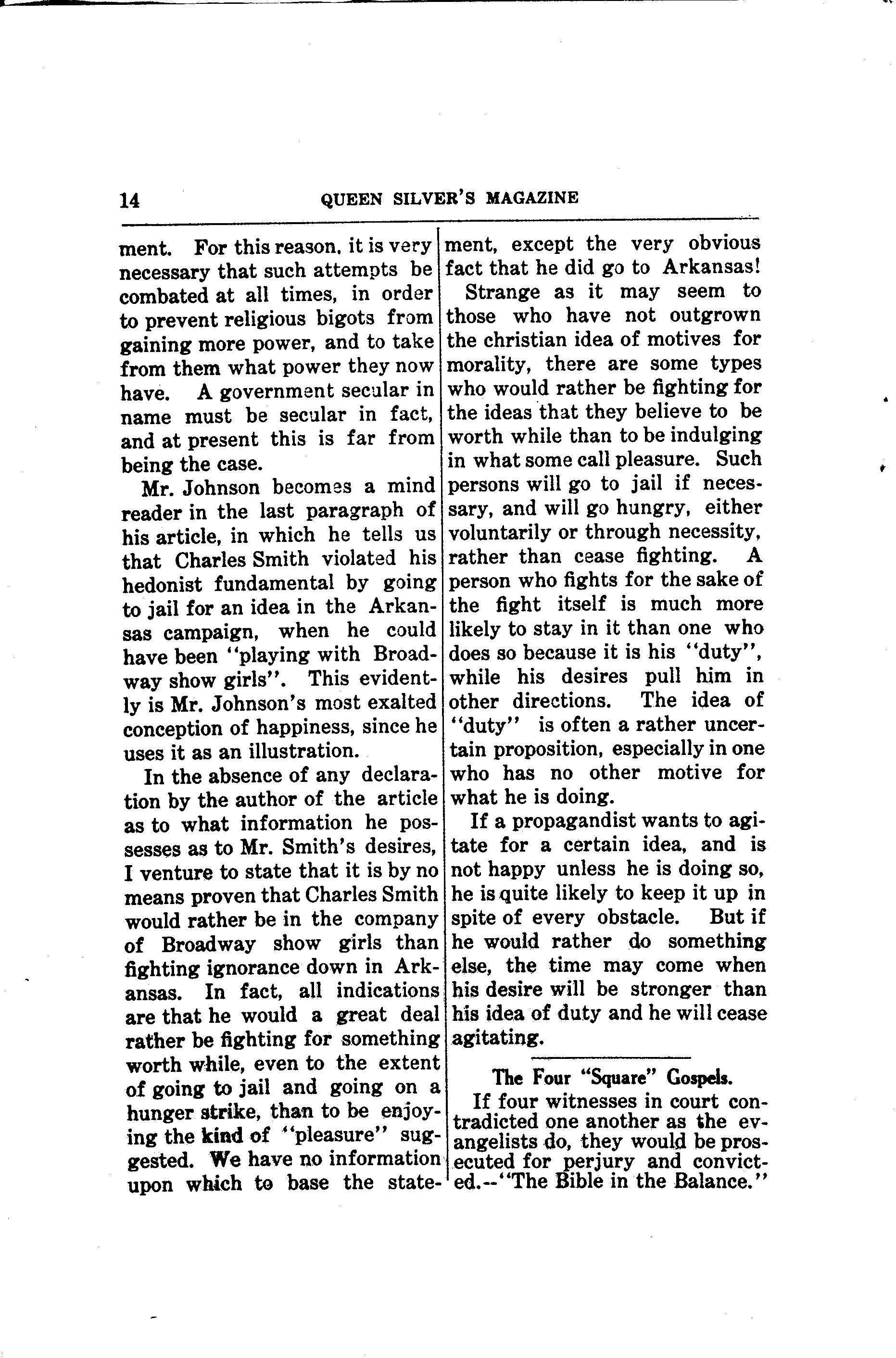 Selected issues of Queen Silver's Magazine have been scanned and converted to Adobe PDF files. Others are available, page by page, as raw scans (PNG images).