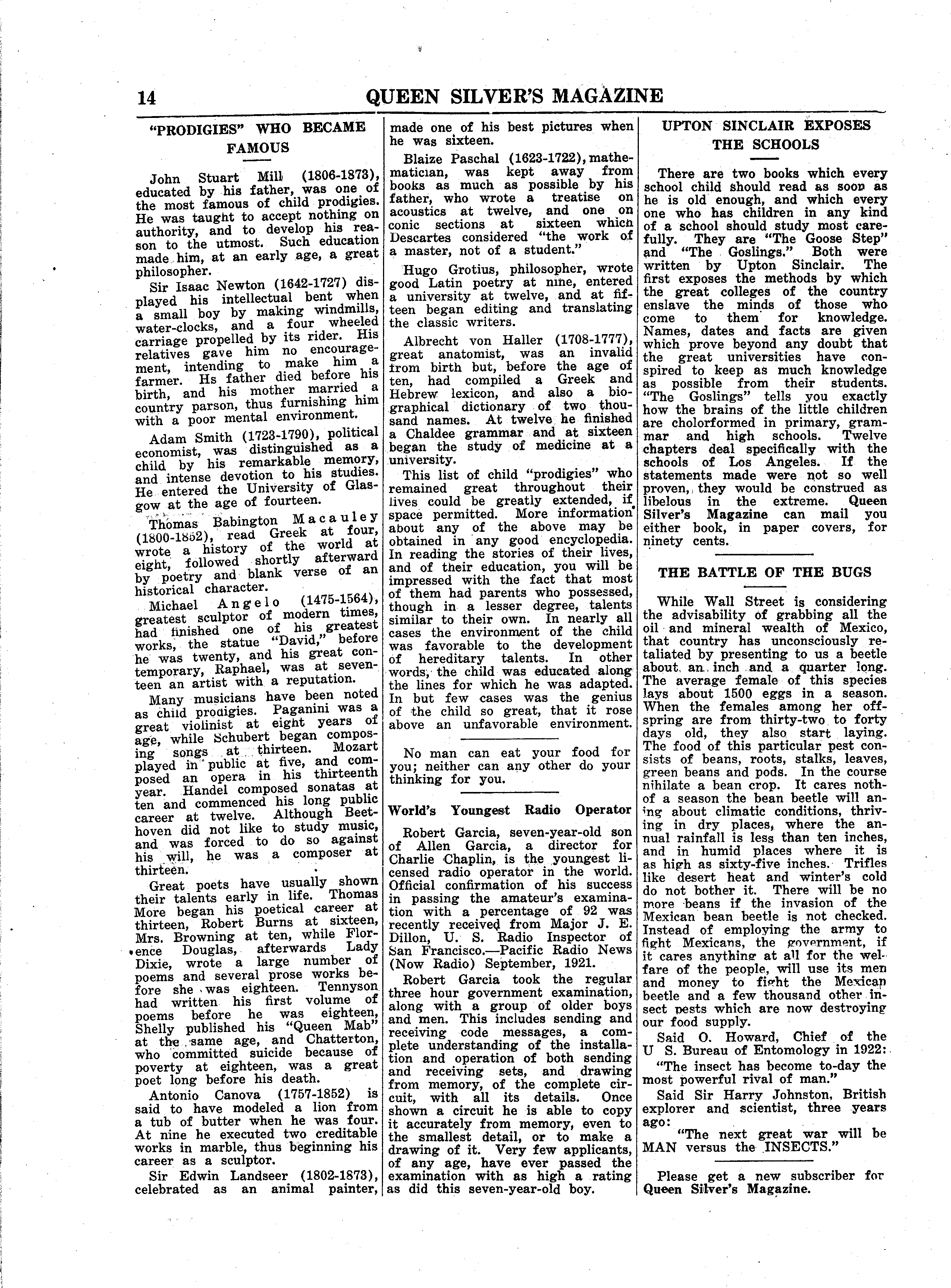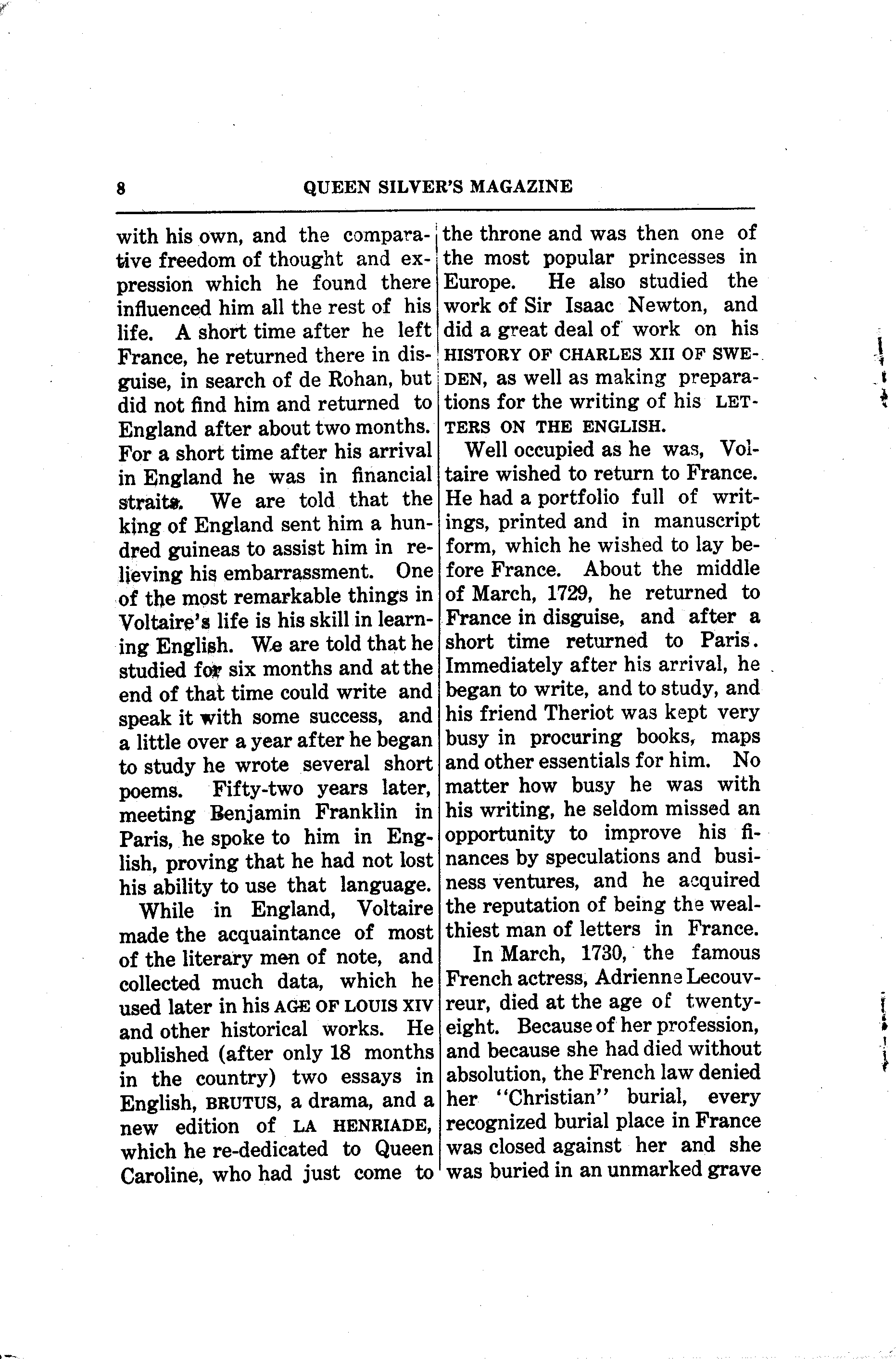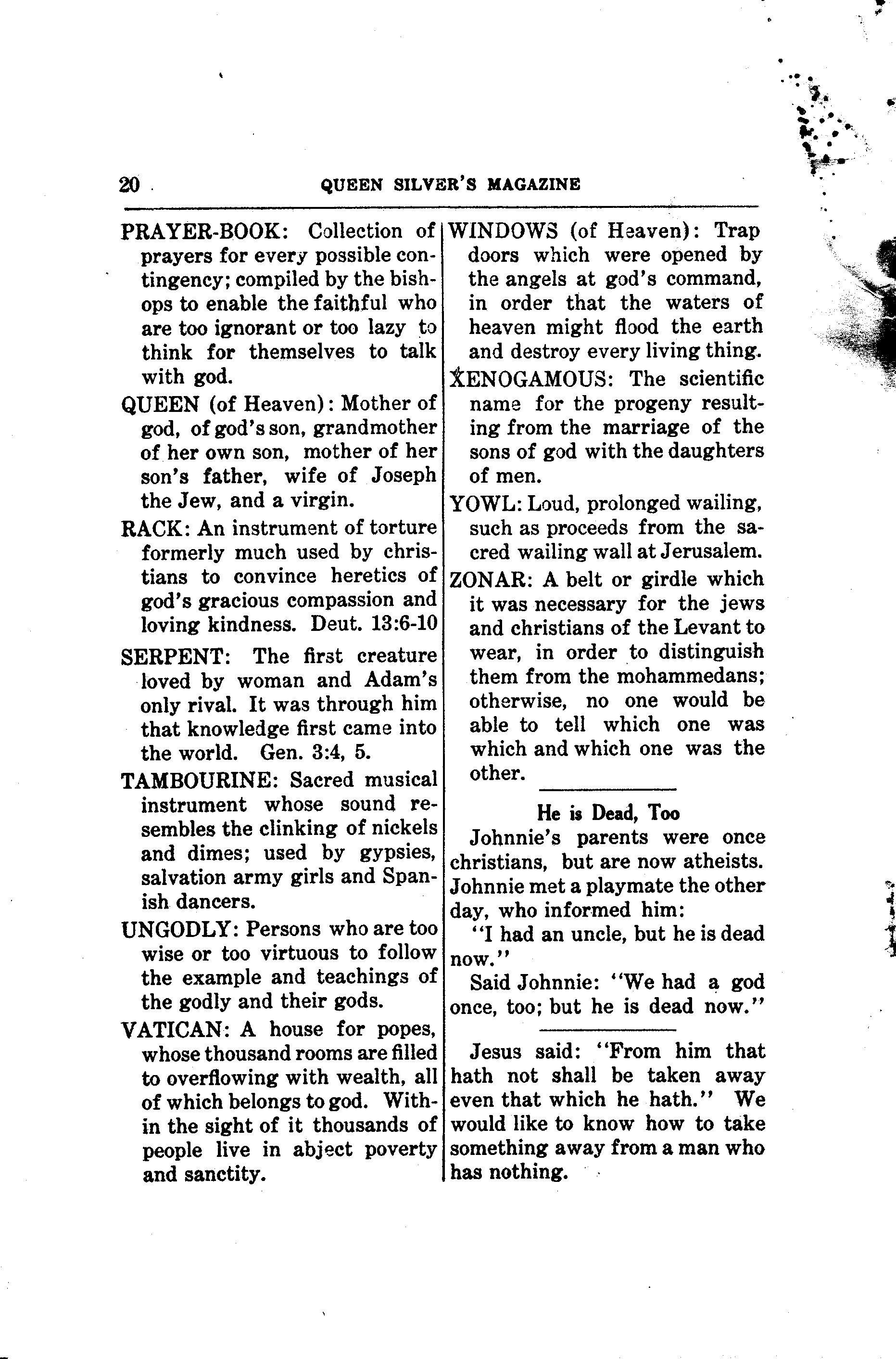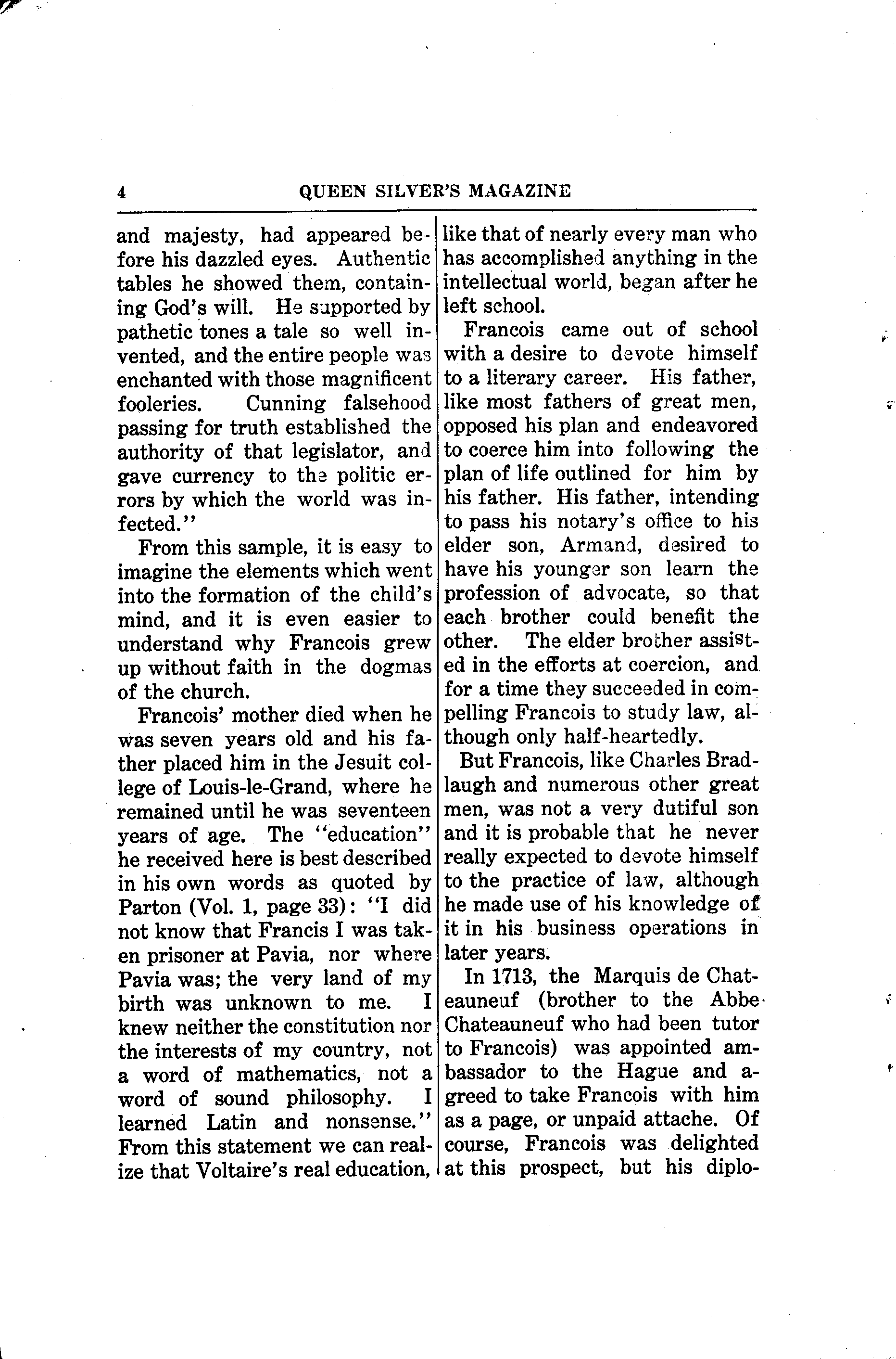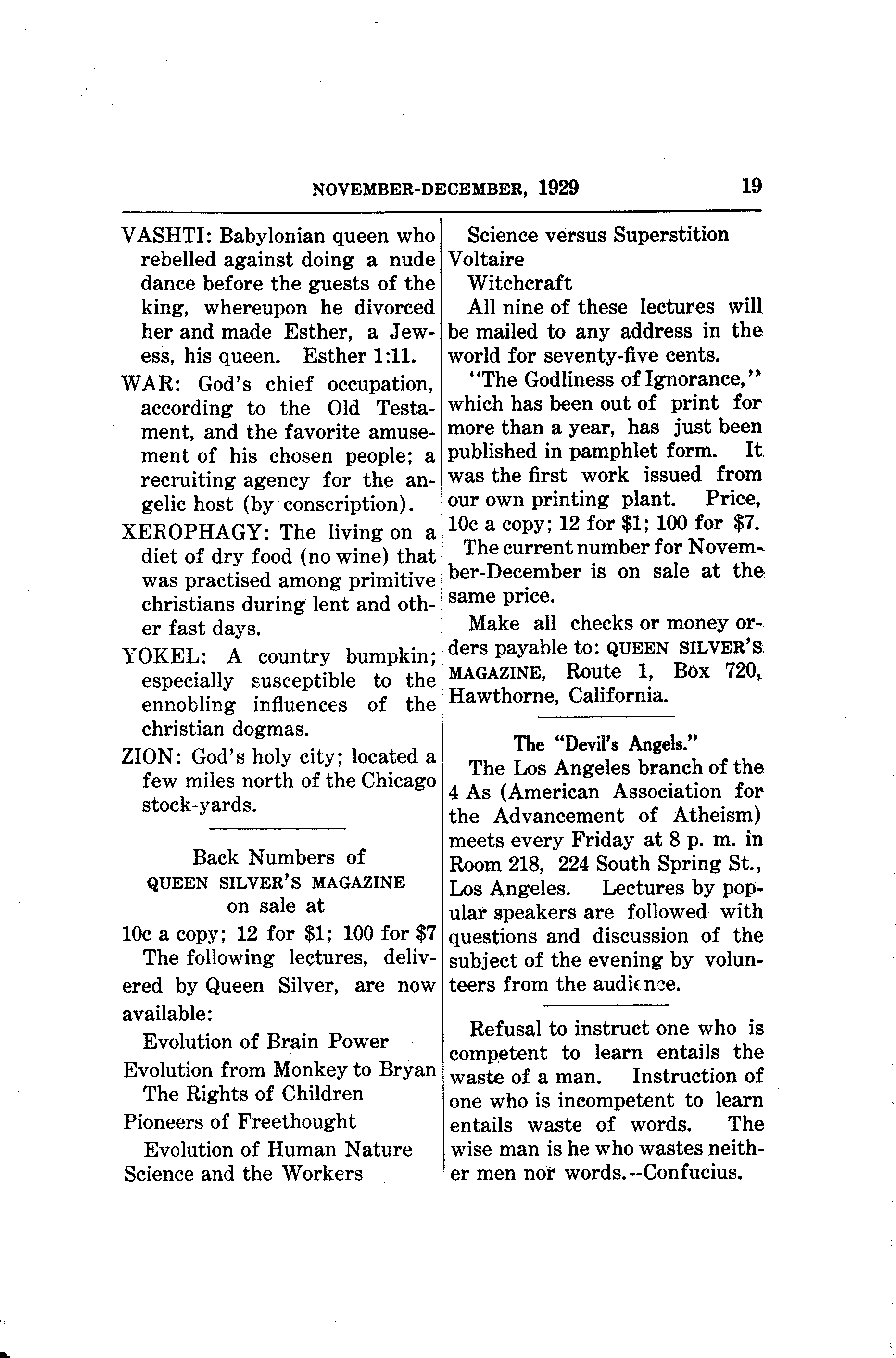 Selected issues of Queen Silver's Magazine have been scanned and converted to Adobe PDF files. Others are available, page by page, as raw scans (PNG images).