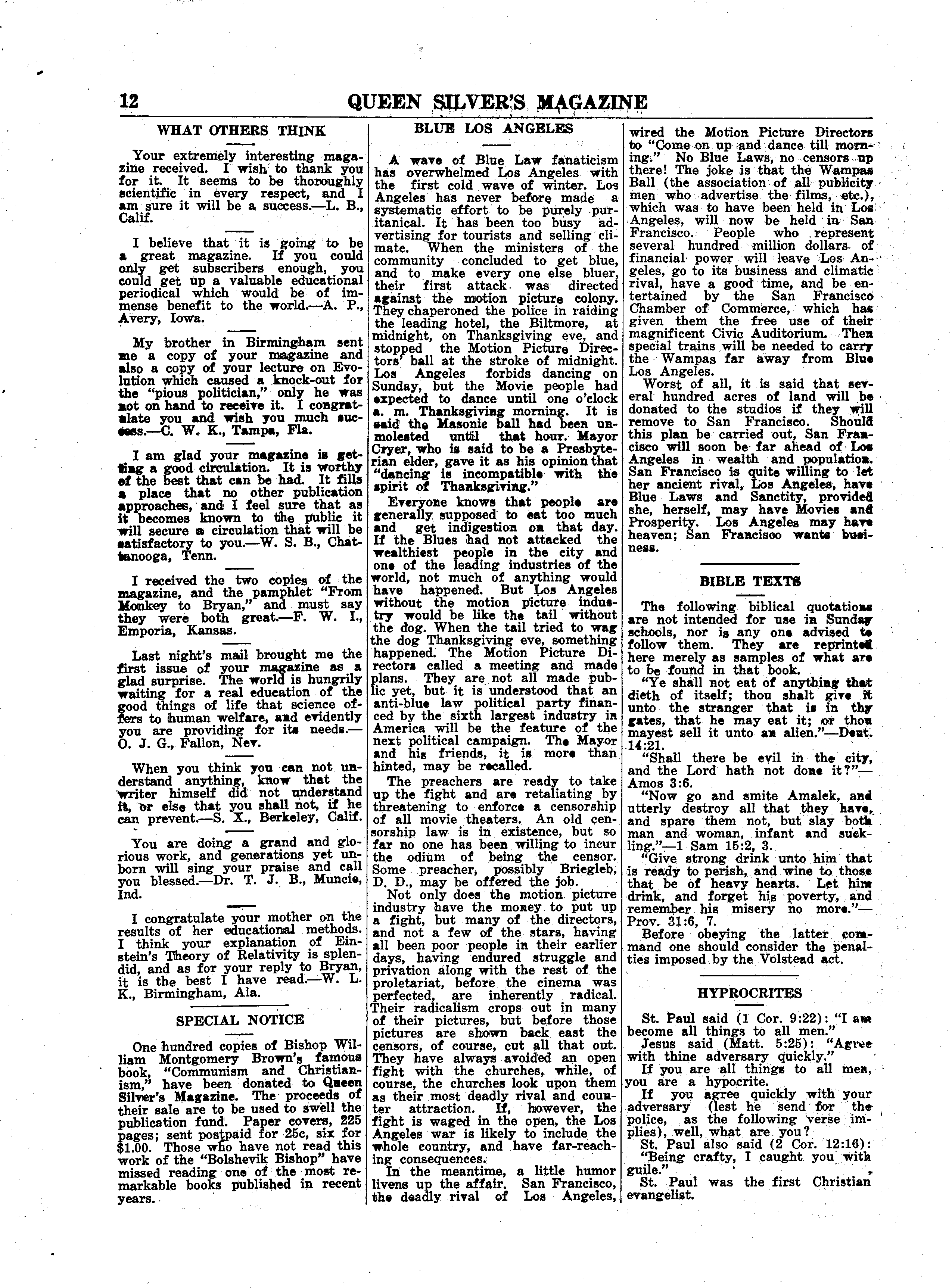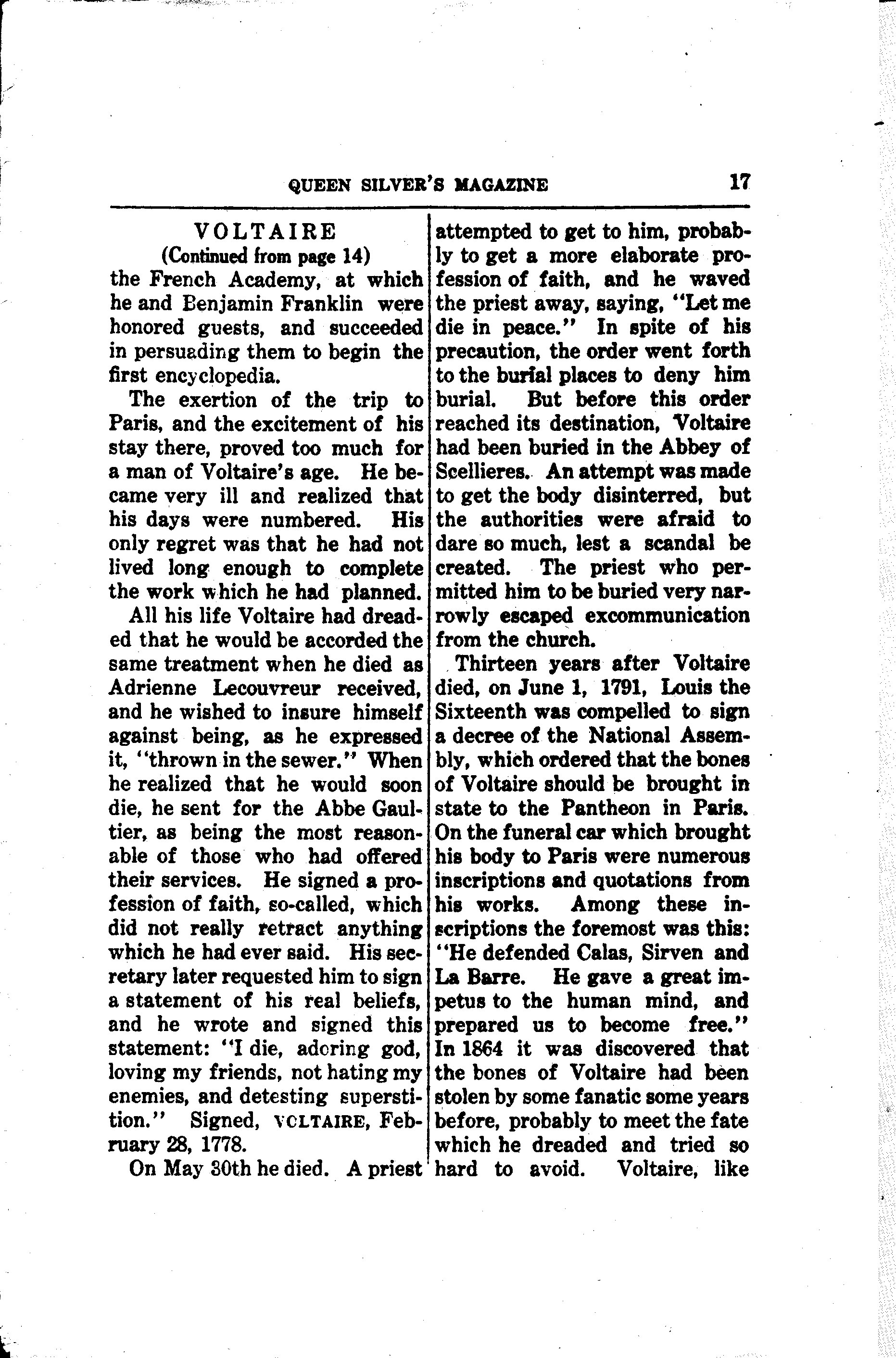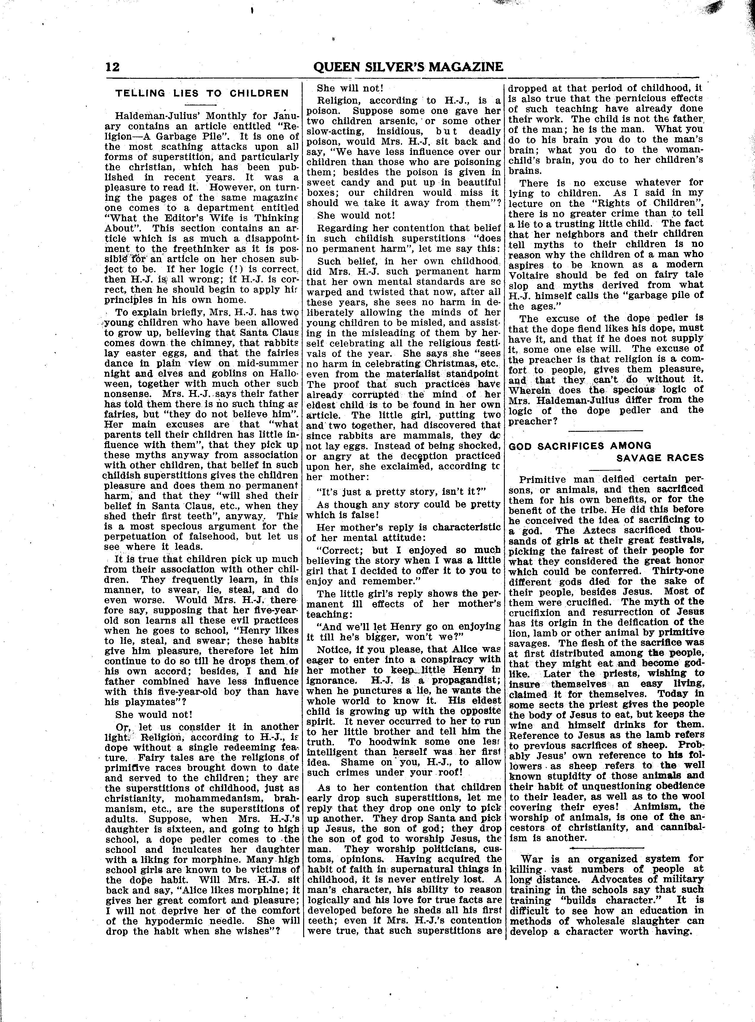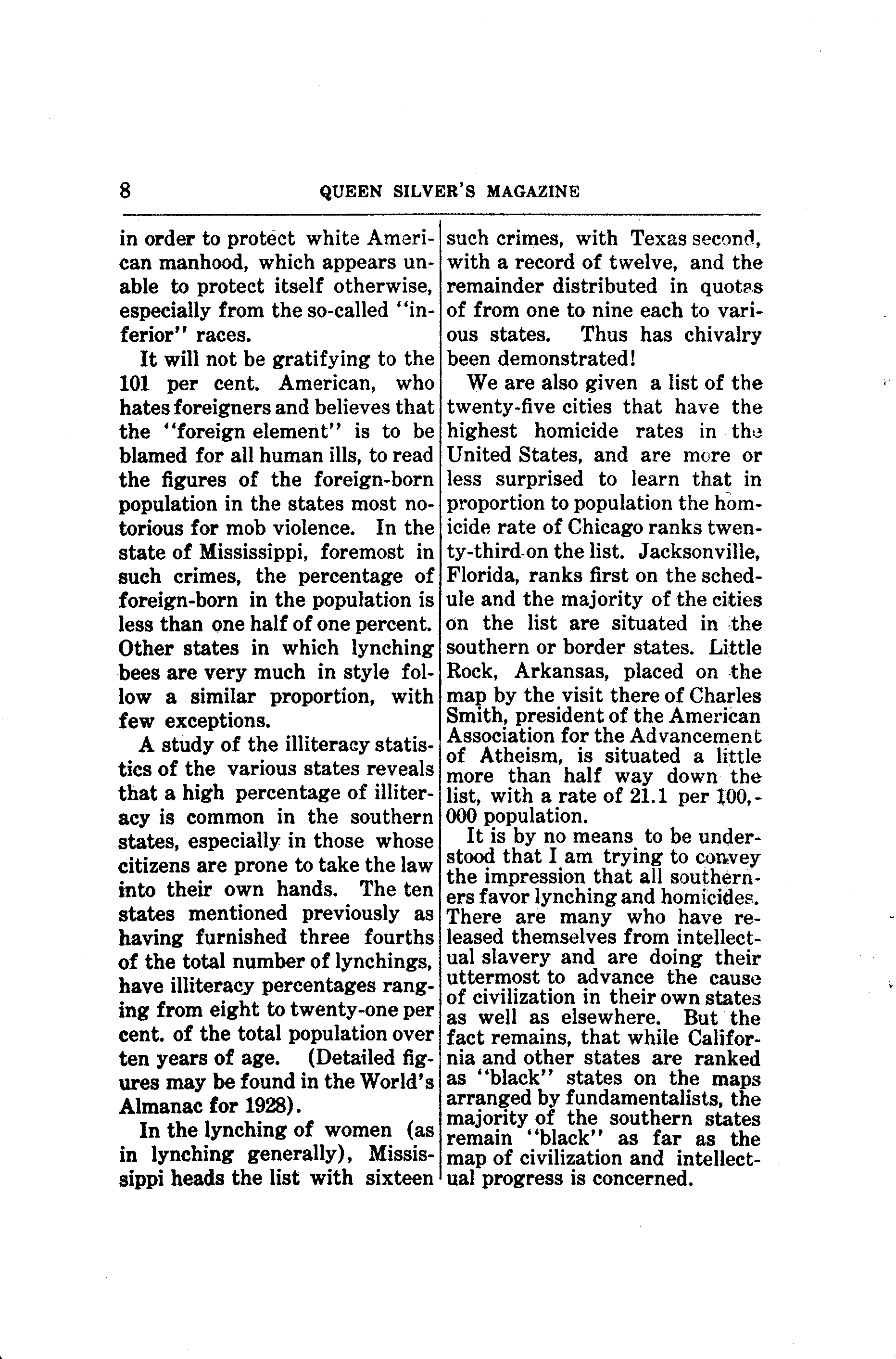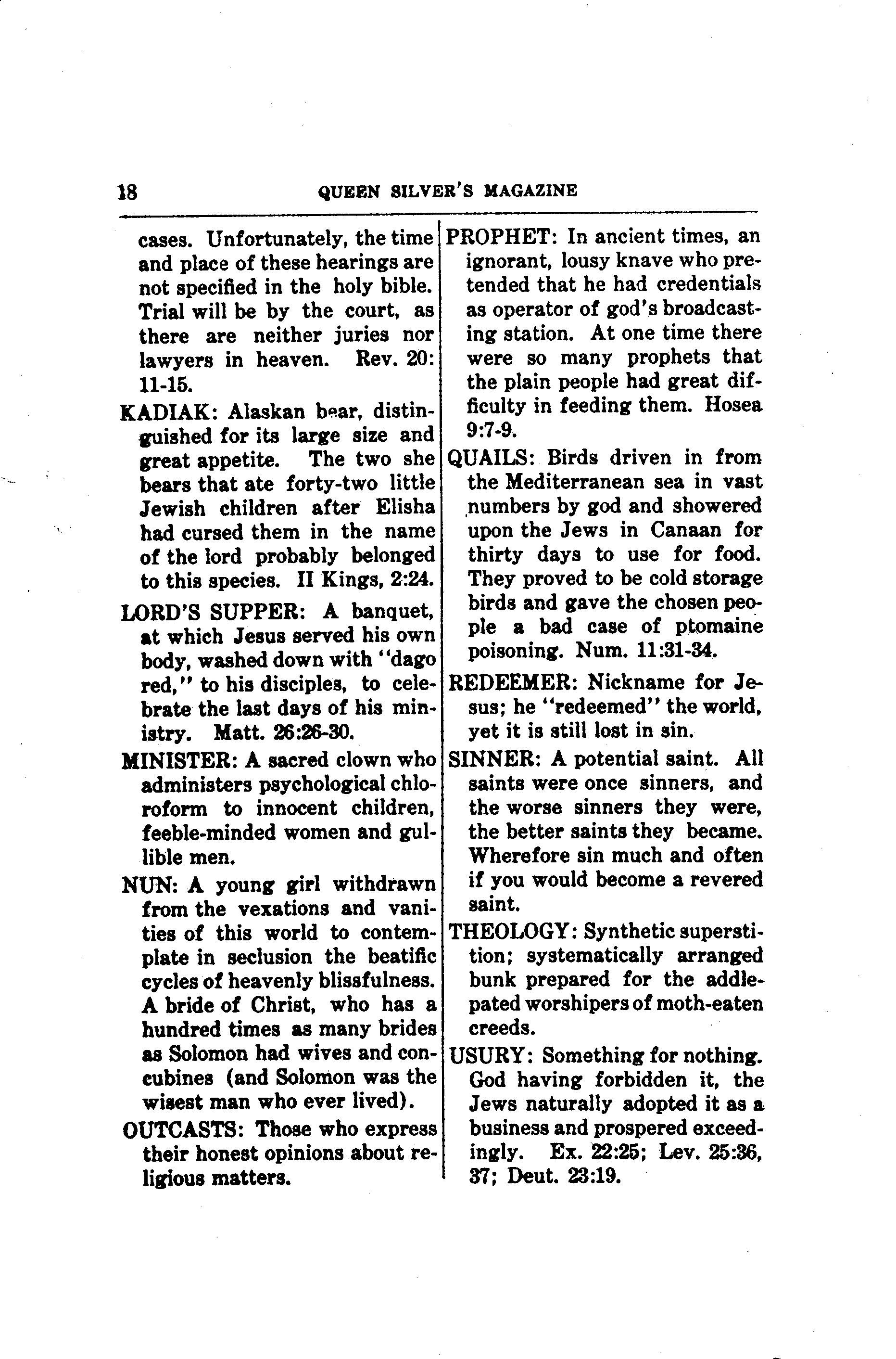 Selected issues of Queen Silver's Magazine have been scanned and converted to Adobe PDF files. Others are available, page by page, as raw scans (PNG images).