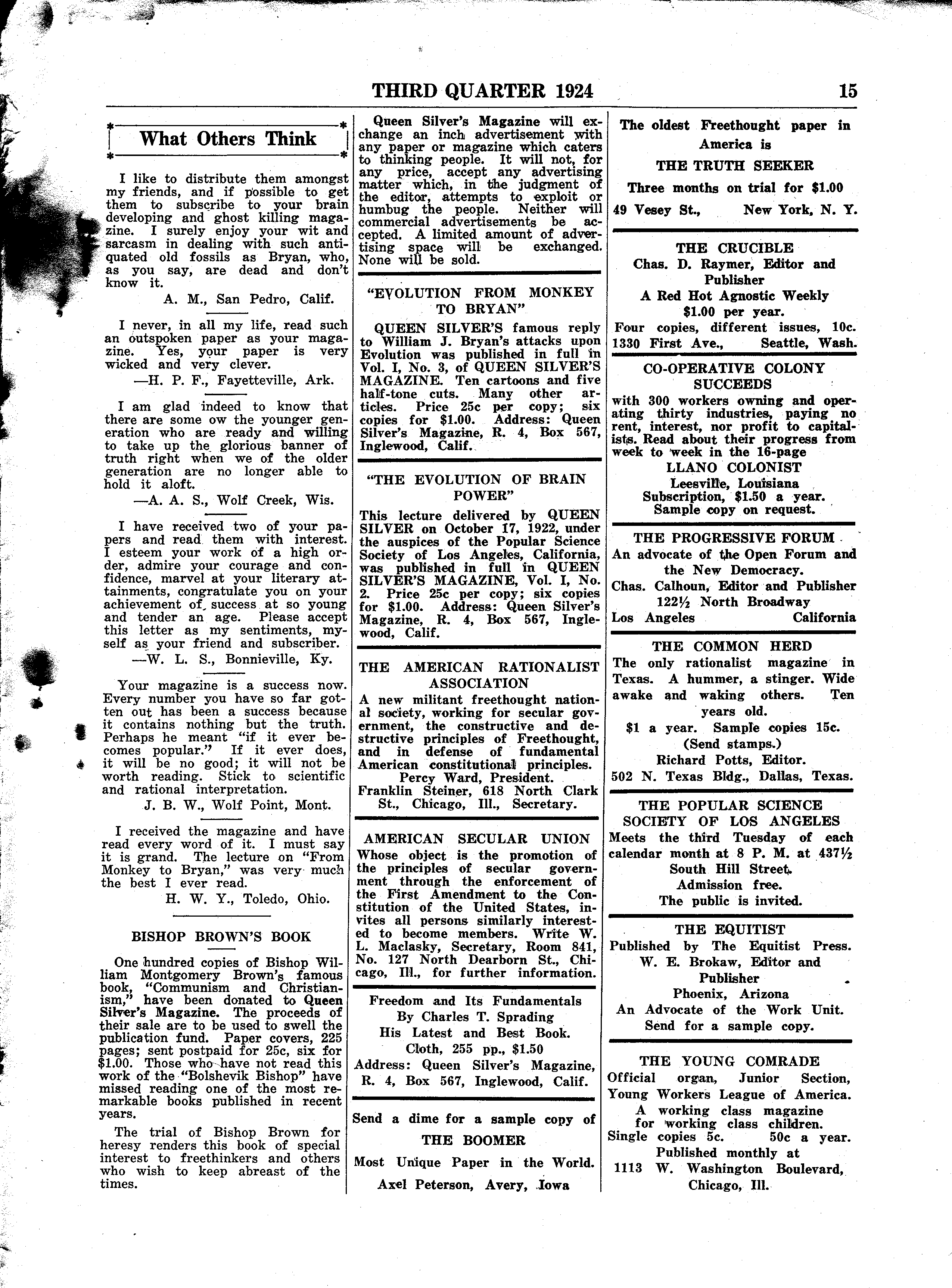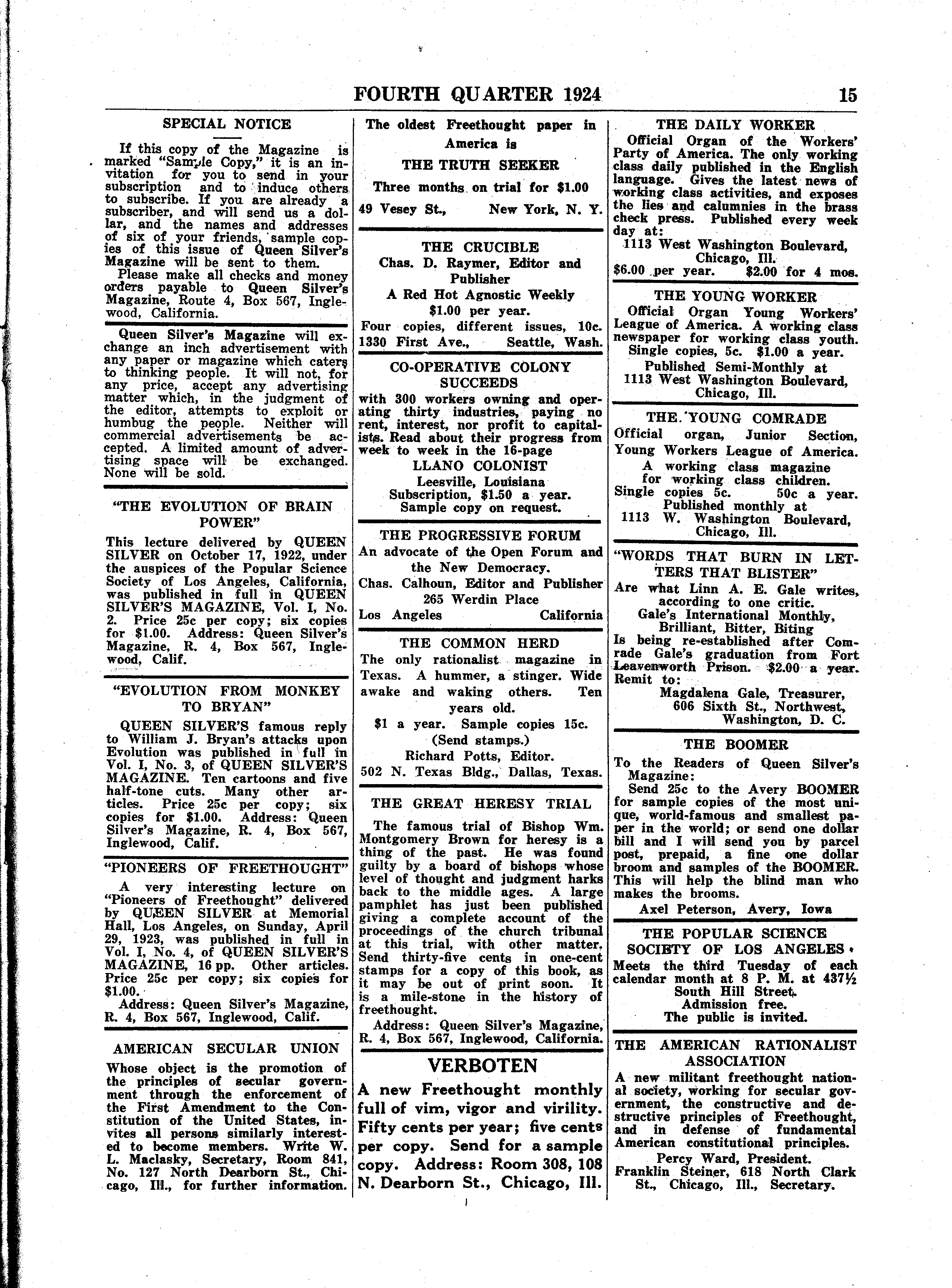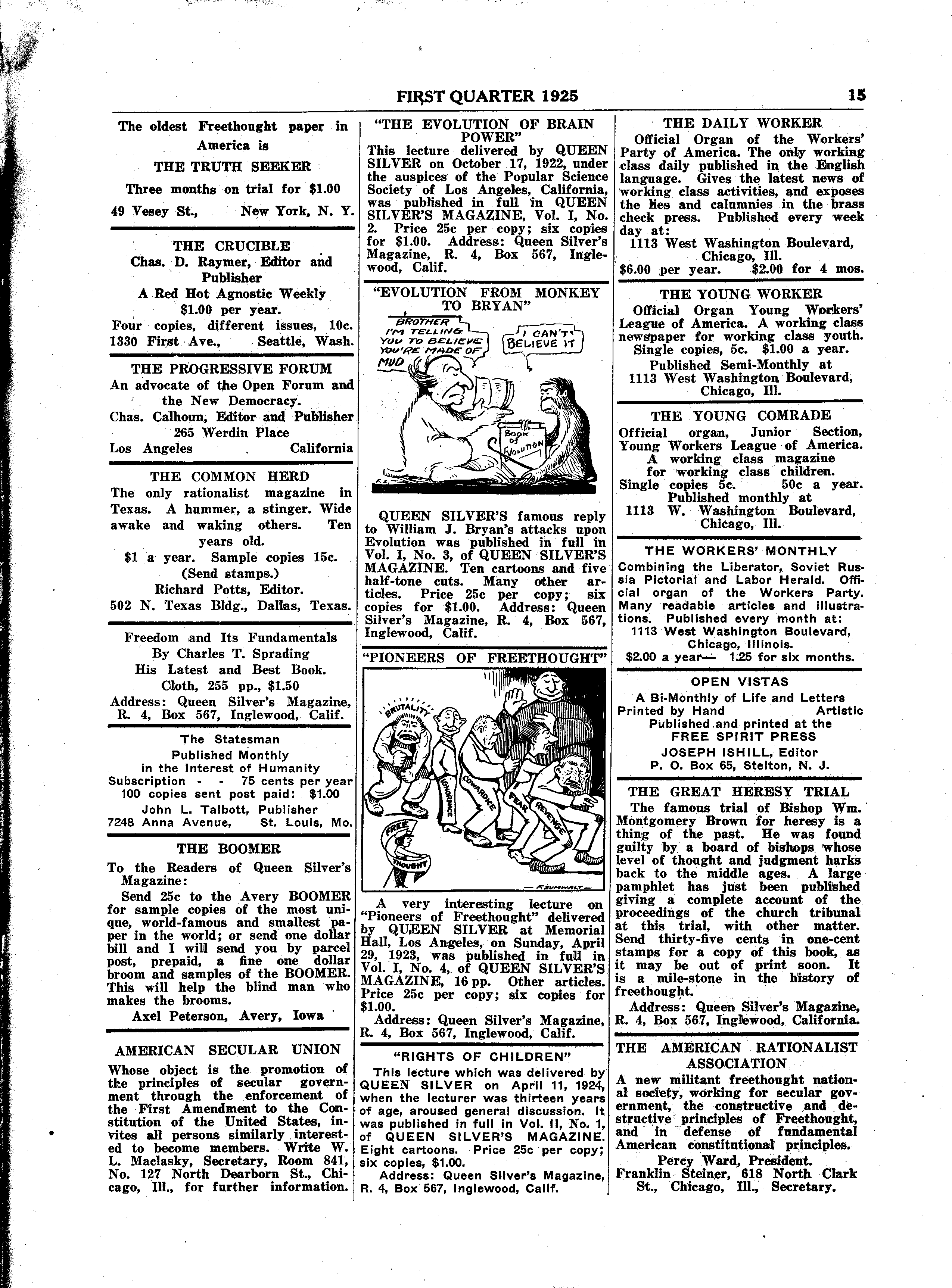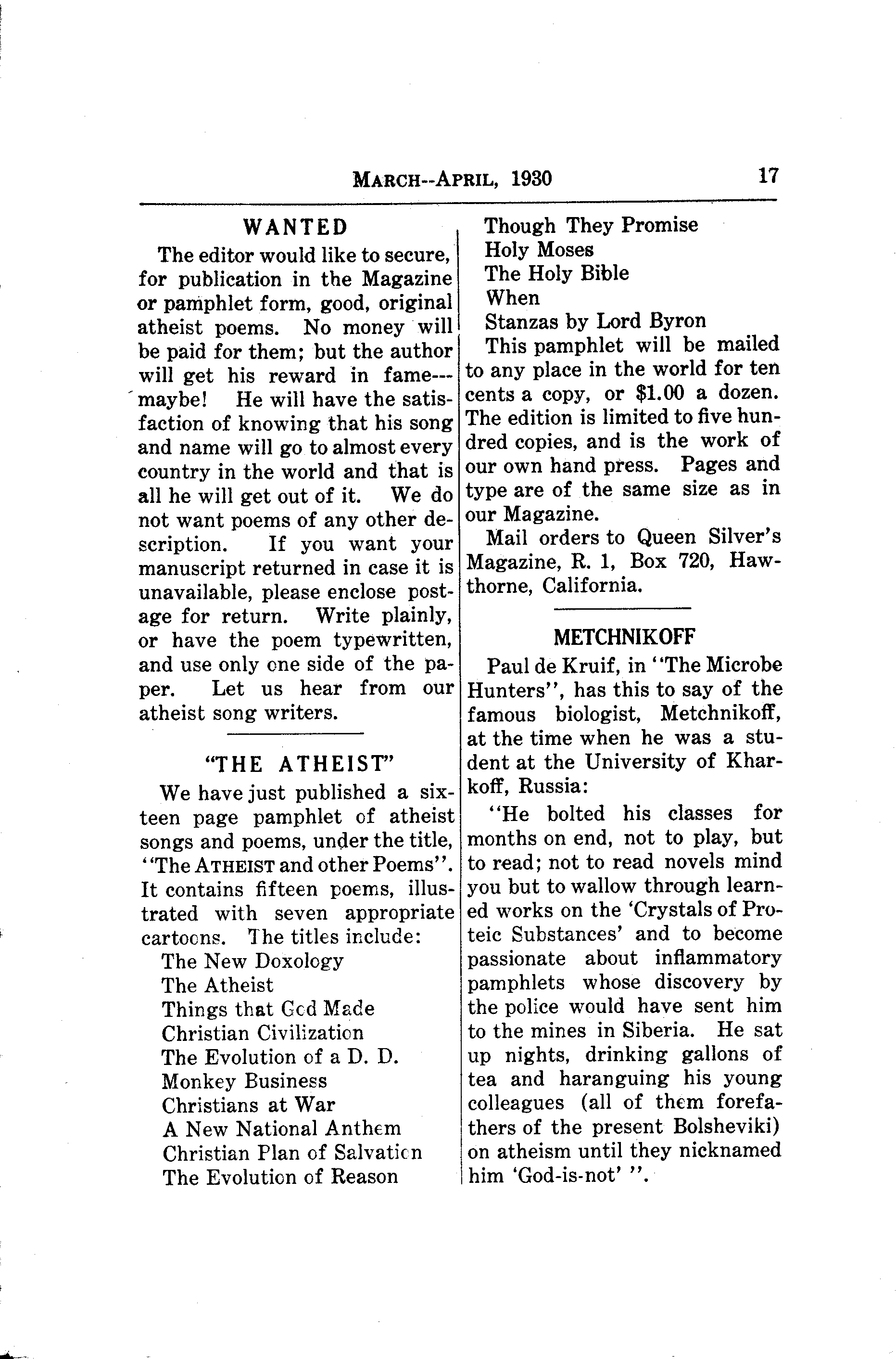 ![]() "Evolution from Monkey to Bryan" full pamphlet in PDF format | ![]() The Atheist and Other Poems full pamphlet in PDF format |
